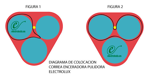 - Colocaremos la correa nueva como se muestra en la Figura 2. HAY QUE TENSARLA, HACIENDO BASTANTE FUERZA, lo mejor es: