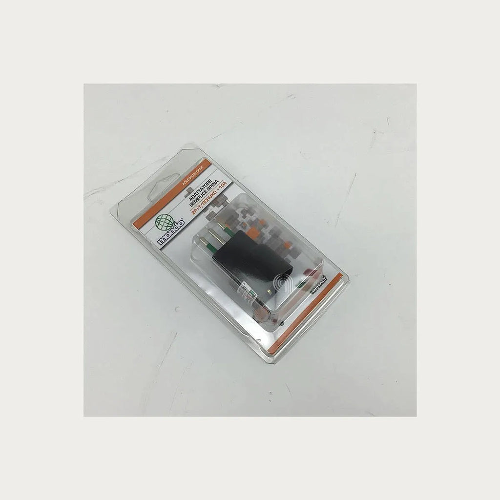 MONDO ofrece este adaptador Schuko a enchufe italiano de 10A, ideal para conectar dispositivos con enchufe italiano de 10A/16A a tomas Schuko europeas. Este adaptador es de tipo adaptable, fabricado en Italia, y cuenta con certificación IMQ. Es perfecto para electrodomésticos como tostadoras, aspiradoras, cafeteras y planchas, proporcionando una solución compacta y segura para sus necesidades de conexión eléctrica. Su diseño permite ahorrar espacio y garantiza una conexión fiable.