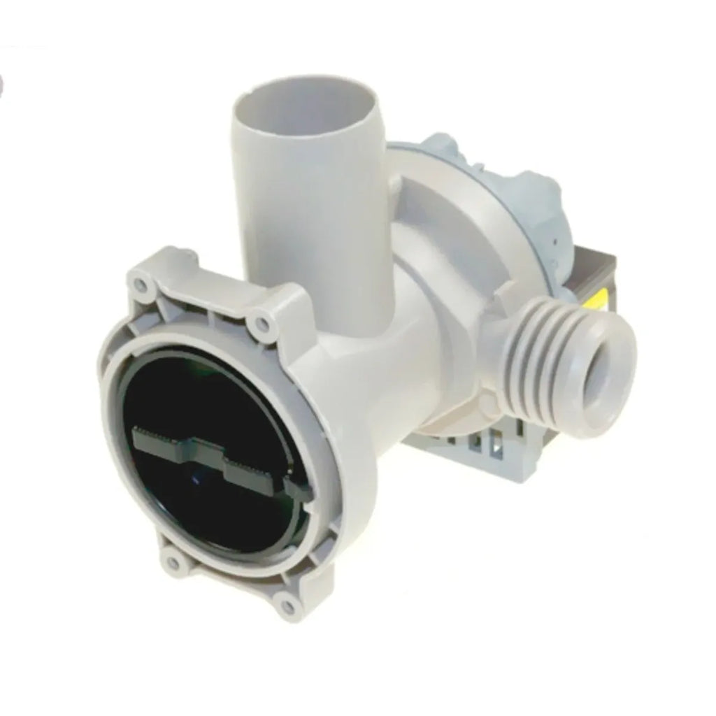 Bomba de sortida d'aigua per a rentadora Haier. Recanvi per a reparació d'electrodomèstic de rentatge. Un avaria a la bomba pot provocar que la rentadora no desguàs correctament o que es produeixi un soroll estrany en el moment de sortida d'aigua de l'aparell.