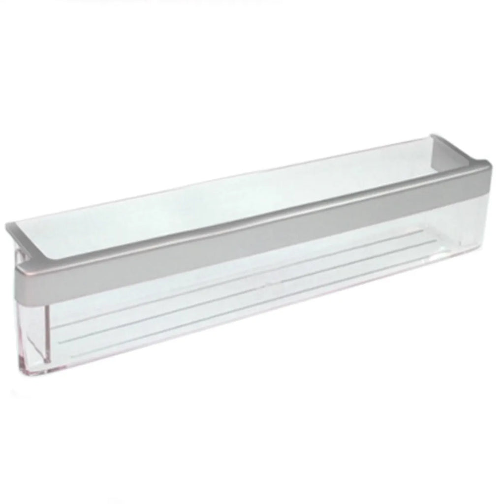 Recanvi de safata inferior de porta per a frigorífic Bosch. Aquest suport es col·loca a la part més baixa de la porta de la part dreta de l'aparell, corresponent al frigorífic.