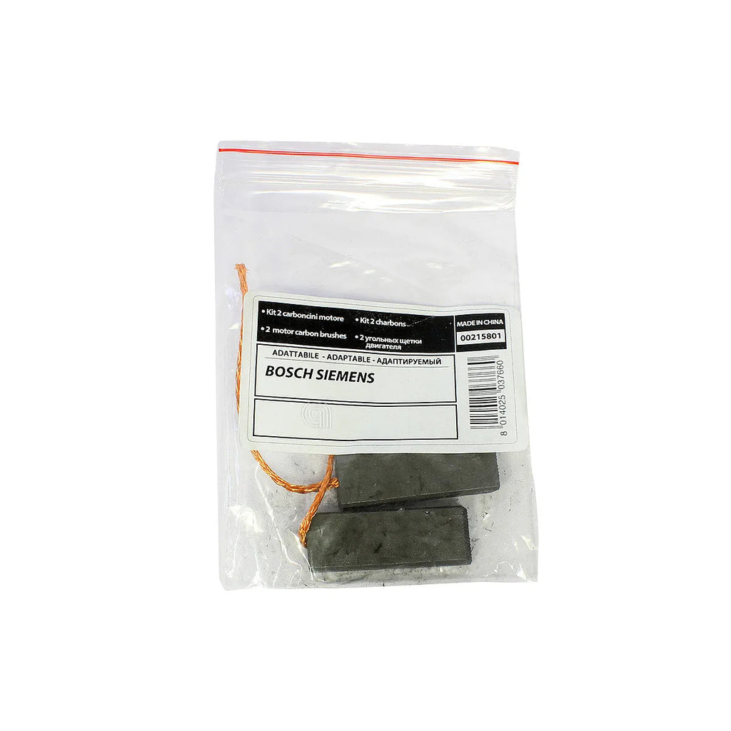 Las **Adaptable** escobillas de carbón para motor de lavadora son un componente esencial para el correcto funcionamiento de su electrodoméstico. Compatibles con lavadoras de las marcas **BOSCH, SIEMENS**, estas escobillas de alta calidad aseguran una transmisión de energía eficiente al motor, prolongando la vida útil de su aparato. Ideales para reemplazar piezas desgastadas y restaurar el rendimiento óptimo de su lavadora. Referencia del producto: AST-00215801.