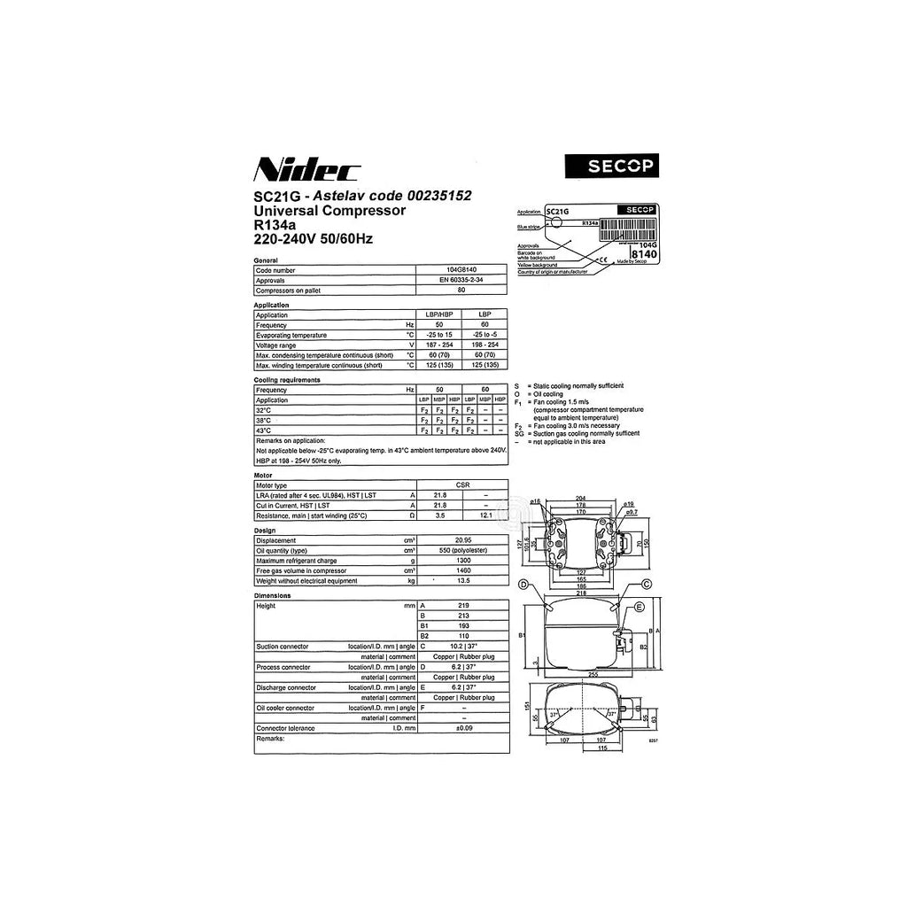 COMPRESOR R134A FRIGORÍFICO UNIVERSALE