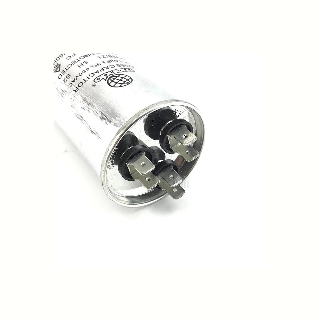 Este condensador doble de tipo **Adaptable** es un componente esencial para el correcto funcionamiento de unidades de aire acondicionado. Diseñado para ofrecer una capacidad de **40 microfaradios (µF)** para el compresor y **1.5 microfaradios (µF)** para el ventilador, ambos a un voltaje de **450V AC**, asegura un arranque eficiente y un funcionamiento continuo y estable del motor. Es un recambio universal de la marca **UNIVERSALE** compatible con una amplia gama de equipos de climatización. Su diseño de doble función en un solo cuerpo simplifica la instalación y el cableado. Es ideal para sustituir condensadores defectuosos en sistemas de aire acondicionado que requieren esta configuración de doble capacitancia.