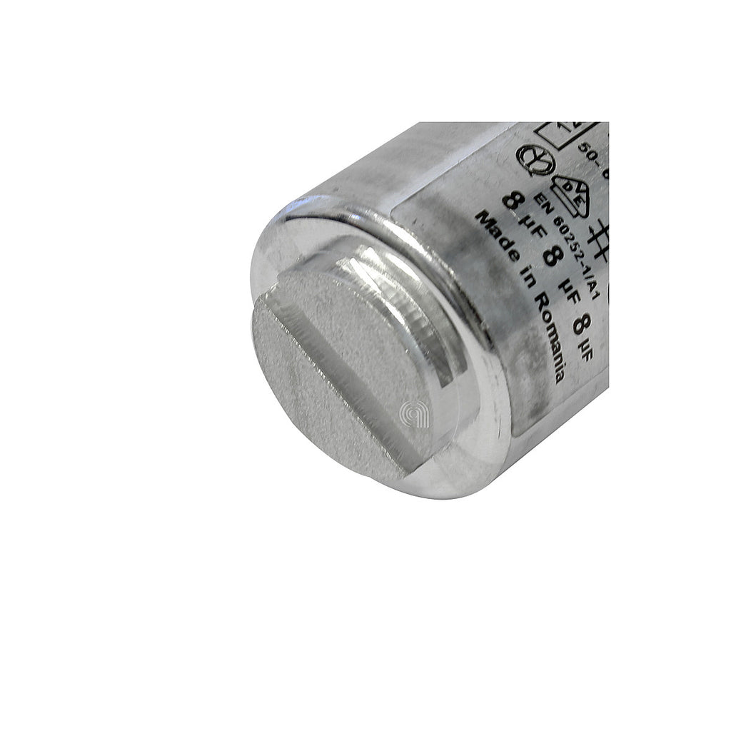 Condensador metálico de 8uF para secadoras ELECTROLUX y otras marcas compatibles. Este recambio OEM (Original Equipment Manufacturer) es esencial para el correcto funcionamiento de su secadora, ya que suprime cualquier interferencia eléctrica o ruido que pueda generarse durante el uso del aparato. Asegura un rendimiento óptimo y prolonga la vida útil de su electrodoméstico. Es un condensador de acoplamiento rápido, fácil de instalar.