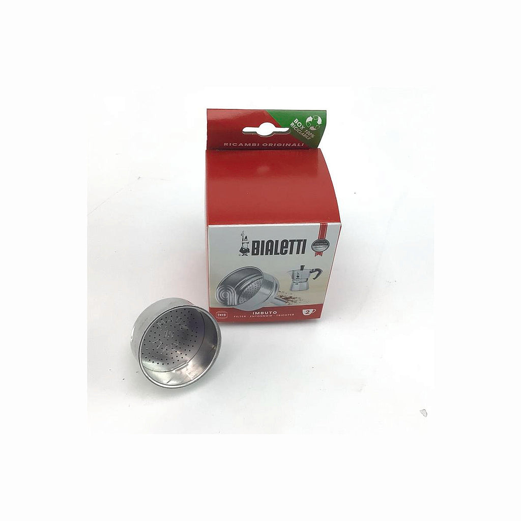 Este embudo es un recambio original para cafetera moka Bialetti, diseñado para preparar café en máquinas de 2 tazas. Se trata de una pieza fundamental que aloja el café molido y permite la correcta filtración durante el proceso de elaboración.