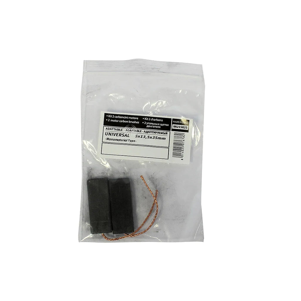 Juego de escobillas de carbón UNIVERSALE, adaptable para motores de lavadoras. Estas escobillas de alta calidad aseguran el correcto funcionamiento del motor de su electrodoméstico, prolongando su vida útil. Son un recambio esencial para mantener el rendimiento óptimo de su lavadora. Compatibles con una amplia gama de marcas y modelos, ofrecen una solución económica y fiable para el mantenimiento de su aparato. Ideales para sustituir escobillas desgastadas y restaurar la potencia del motor.