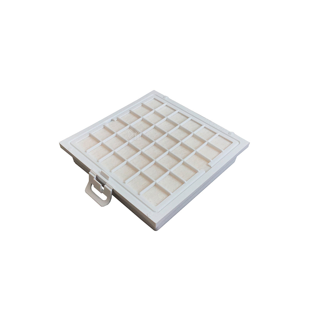 Filtro HEPA rectangular original diseñado para aspiradoras de las marcas Bosch, Siemens y Profilo. Este filtro de alta eficiencia está fabricado para capturar partículas finas de polvo y alérgenos, mejorando la calidad del aire durante la limpieza y manteniendo el motor protegido.