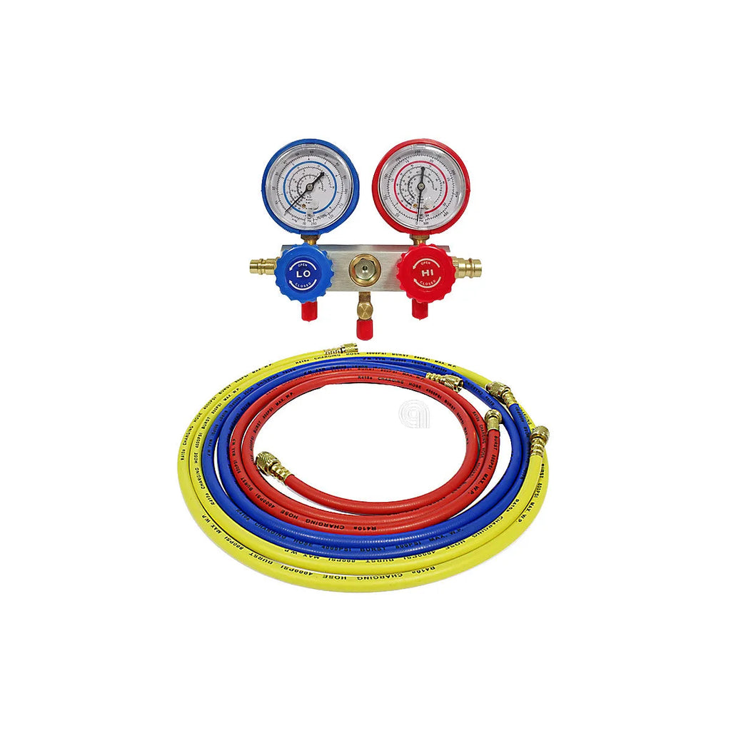 Este **Grupo Manométrico de 2 Vías UNIVERSALE** es una herramienta esencial y adaptable para profesionales de la refrigeración y climatización. Diseñado para sistemas que utilizan gases refrigerantes comunes como R22, R134a, R404a y R407c, este equipo adaptable garantiza mediciones precisas y un control eficiente en la instalación, mantenimiento y diagnóstico de equipos de refrigeración y congelación. Su construcción robusta y su compatibilidad con múltiples refrigerantes lo convierten en una solución versátil para talleres y técnicos.