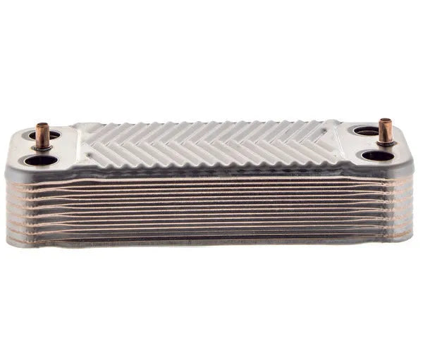 Ofrece este intercambiador a placas. Diseñado para la transferencia de calor en calderas, este componente esencial fabricado con materiales de alta calidad, larga vida útil y rendimiento excepcional, recambio original.