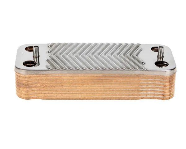 Mejora tu intercambiador de placas de 16 placas, diseñado para calderas SIME. Este componente esencial garantiza una transferencia de calor eficiente para la producción de agua caliente sanitaria y el correcto funcionamiento de tu sistema de calefacción.
