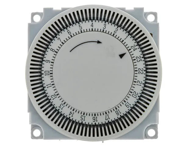 PROGRAMADOR HORARIO 24H CICLO 60´CR24Programador horario 24h. Ciclos 15 minutos. Descarches máximos 24. Voltaje: 230 V Potencia Conmutación: 16 A Medidas Frontal: 60x34x60 mm. Montaje: Tornillos
