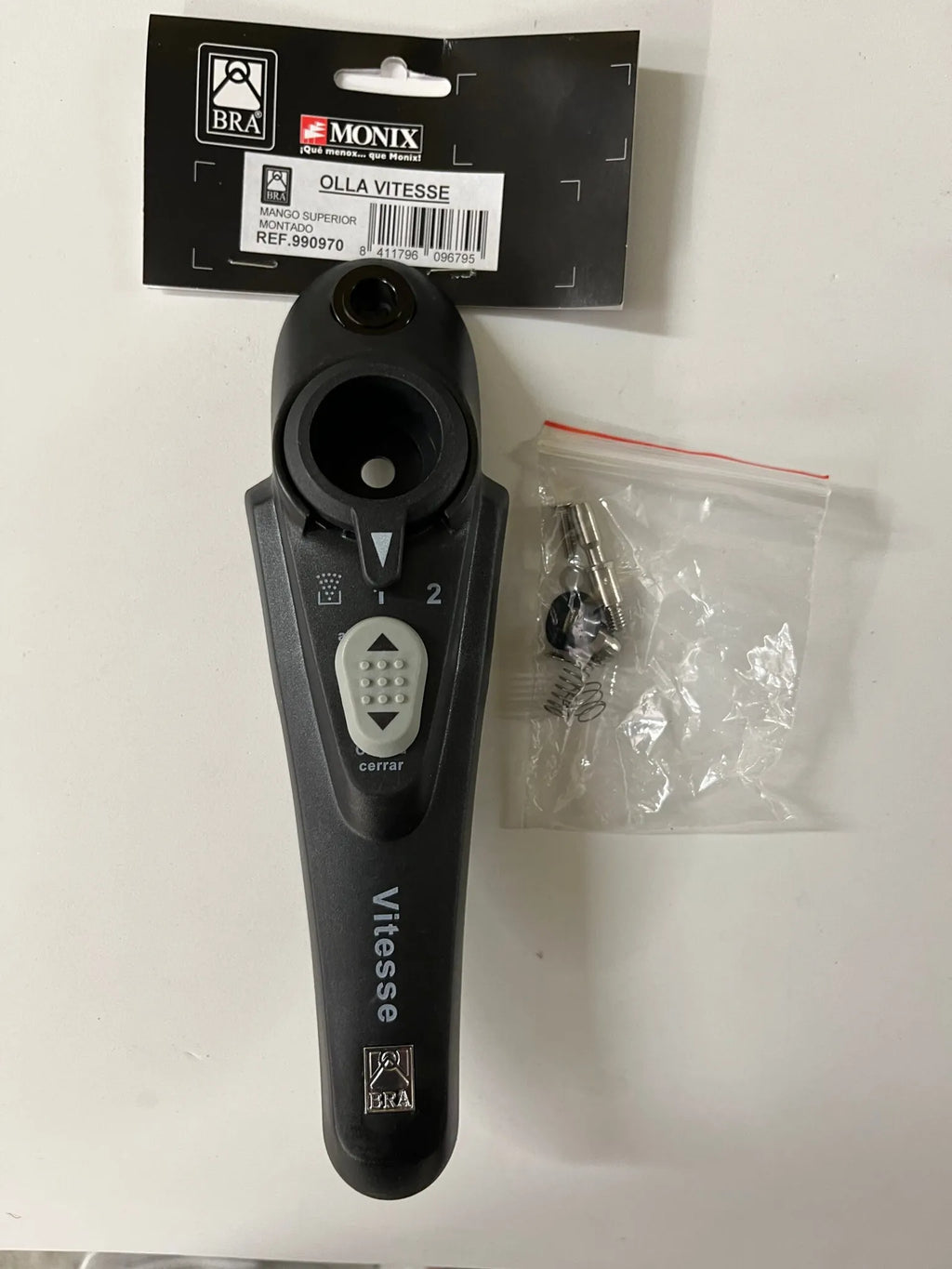 Mànec superior original de l'olla Bra Vitesse amb el selector de pressió, vàlid per a totes les mides d'olla. Casquet metàl·lic rosca vàlvula de seguretat.