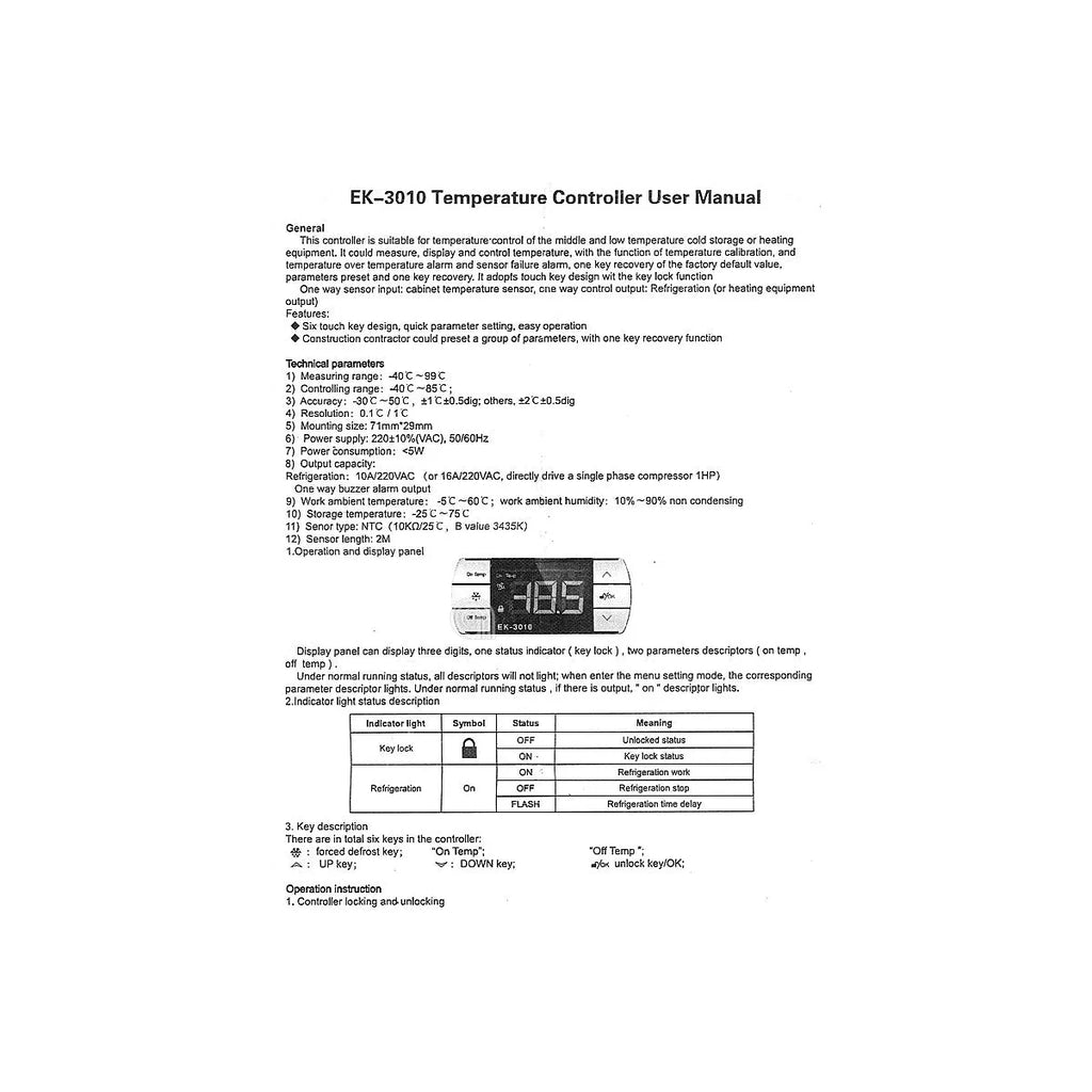UNIVERSALE, un termómetro digital Adaptable modelo EK-3010, ideal para el control preciso de temperatura en sistemas de refrigeración y calefacción. Cuenta con display digital, sonda de paso NTC y botones táctiles para una configuración sencilla. Su diseño robusto con protección IP65 lo hace resistente a la humedad y al polvo, asegurando un rendimiento estable y duradero. Con un rango de control de -40℃ a 85℃, es perfecto para congeladores y frigoríficos.
