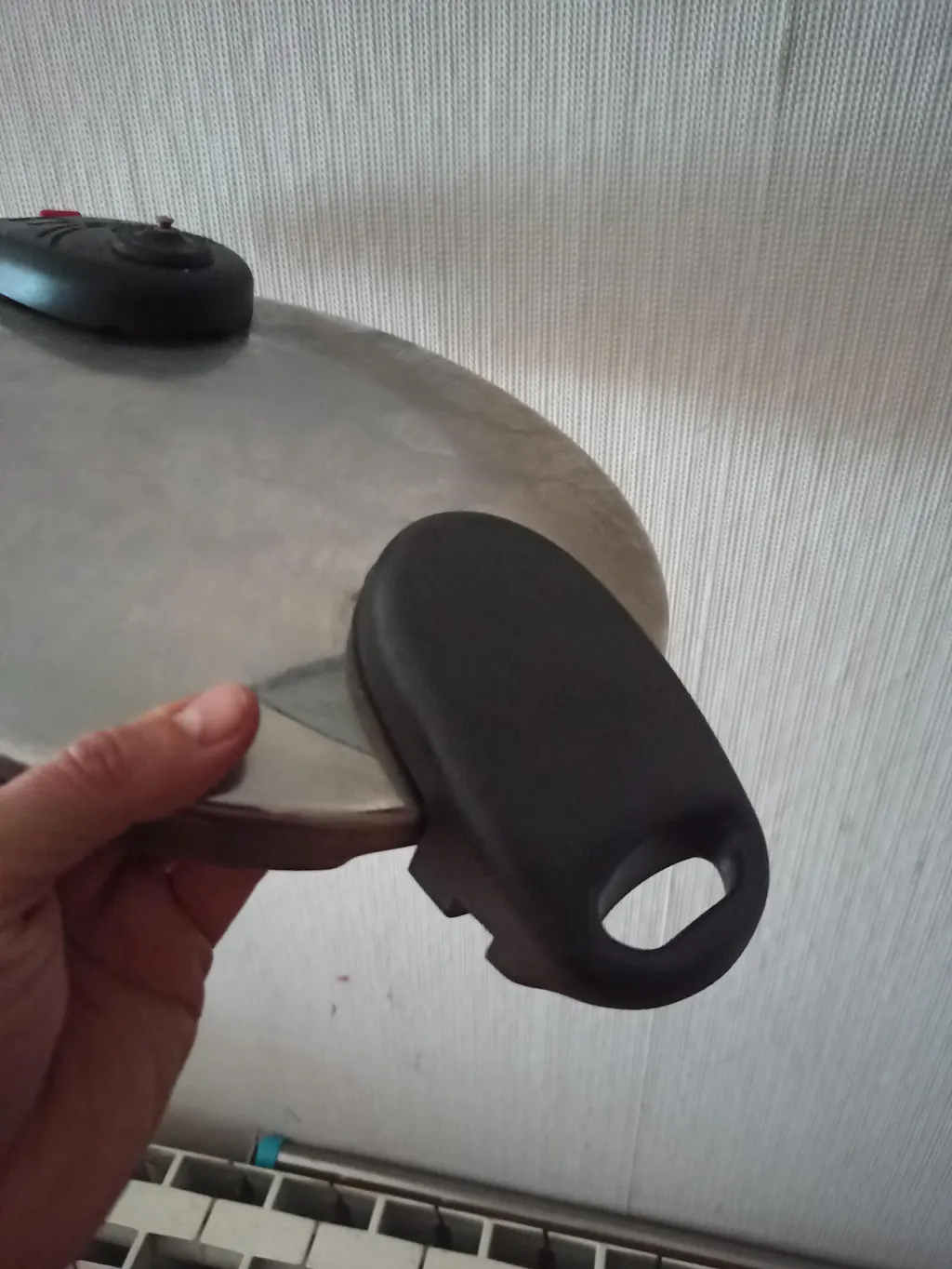 Asa de tapa de repuesto con válvula de seguridad para olla Alza modelo Space. Pieza original de recambio para olla a presión Alza. La instalación de este mango original Alza es rápida y sencilla.