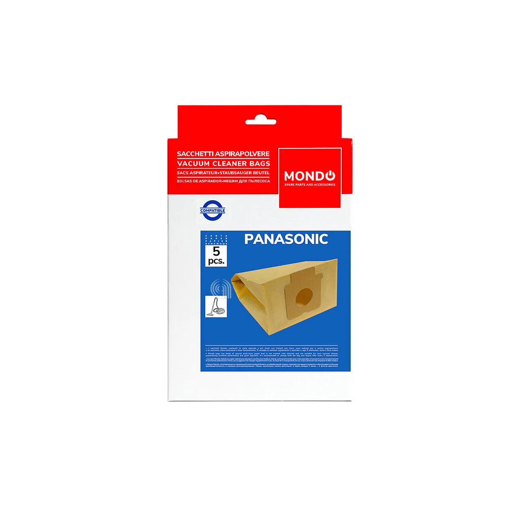 Juego de 5 bolsas adaptables de alta calidad, diseñadas para aspiradoras Panasonic y Electrolux. Estas bolsas son compatibles con una amplia gama de modelos, ofreciendo una solución eficiente y duradera para el mantenimiento de su electrodoméstico. Incluyen microfiltro de aire para una mejor retención de partículas.