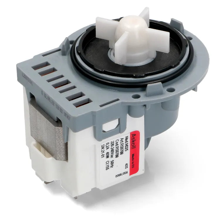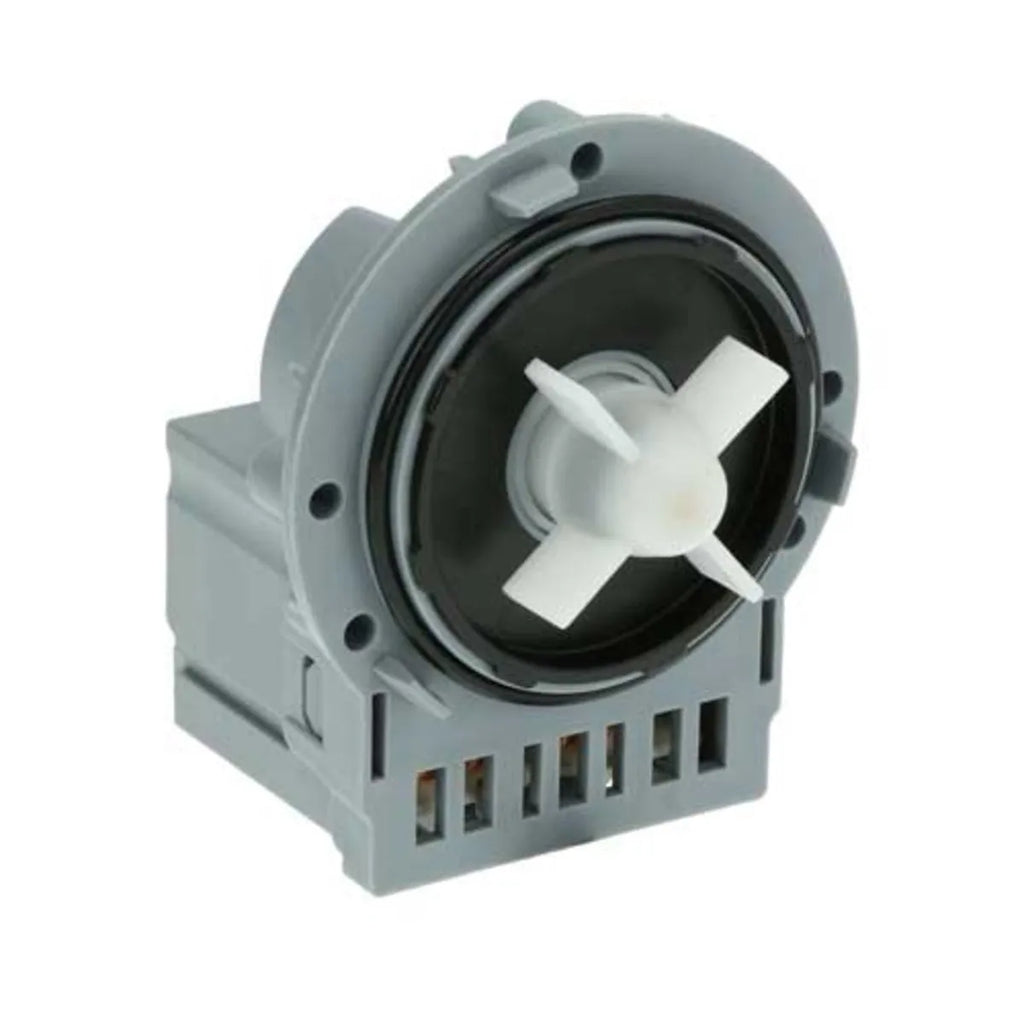Bomba de desagüe para lavadora fijacion 3 tornillos conexion normal. Bomba para lavadora standar con soporte de tornillos. Puede notar que la bomba de la lavadora ha sufrido una avería cuando esta deja de vaciar el agua o cuando el electrodoméstico se detiene durante el lavado en una fase de vaciado. También, en ocasiones, esta avería viene precedida de un ruido extraño en el momento de vaciado de agua del electrodoméstico. Verifique que su bomba no ha sufrido un bloqueo o atasco cuando encuentre un funcionamiento inusual.