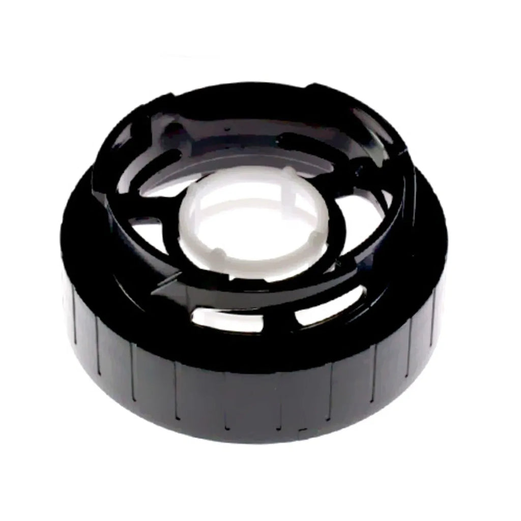Soporte de vaso para batidora Bosch. La rosca puede agrietarse o romperse debido a la vibración, provocando fungas de líquido en el vaso. Para evitar una avería en el electrodoméstico es recomentable su sustitución cuando comience a rajarse. Pieza de recambio para robot de cocina.