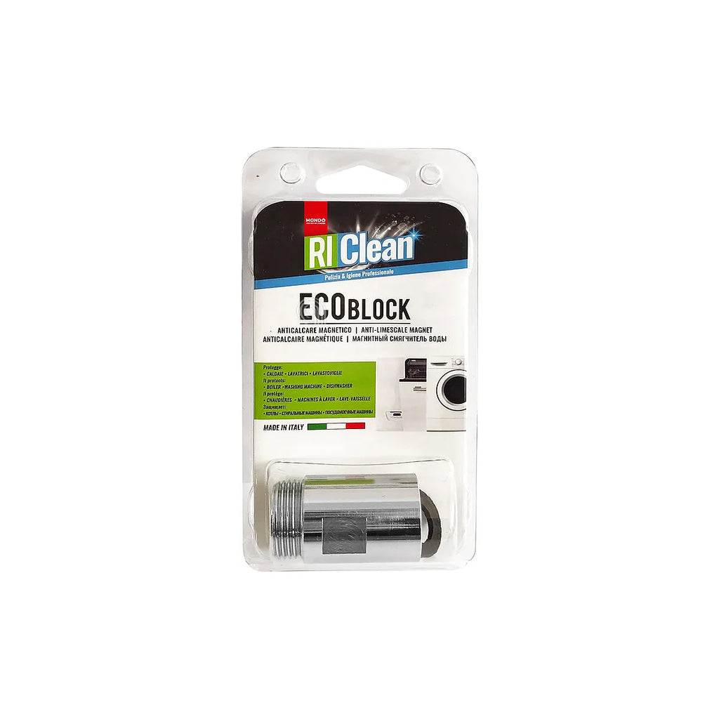 El anticalcare magnético ECOBLOCK RICLEAN de MONDO es una solución adaptable y eficaz para proteger tus lavadoras y lavavajillas. Este innovador dispositivo crea un campo magnético que altera la estructura física de los cristales de calcio y magnesio presentes en el agua, transformándolos en una fina polvareda que se expulsa con el desagüe, evitando así la formación de incrustaciones de cal. Prolonga la vida útil de tus electrodomésticos y mejora su rendimiento con este sistema de fácil instalación. Conexión 3/4, caudal 23LT/MIN.