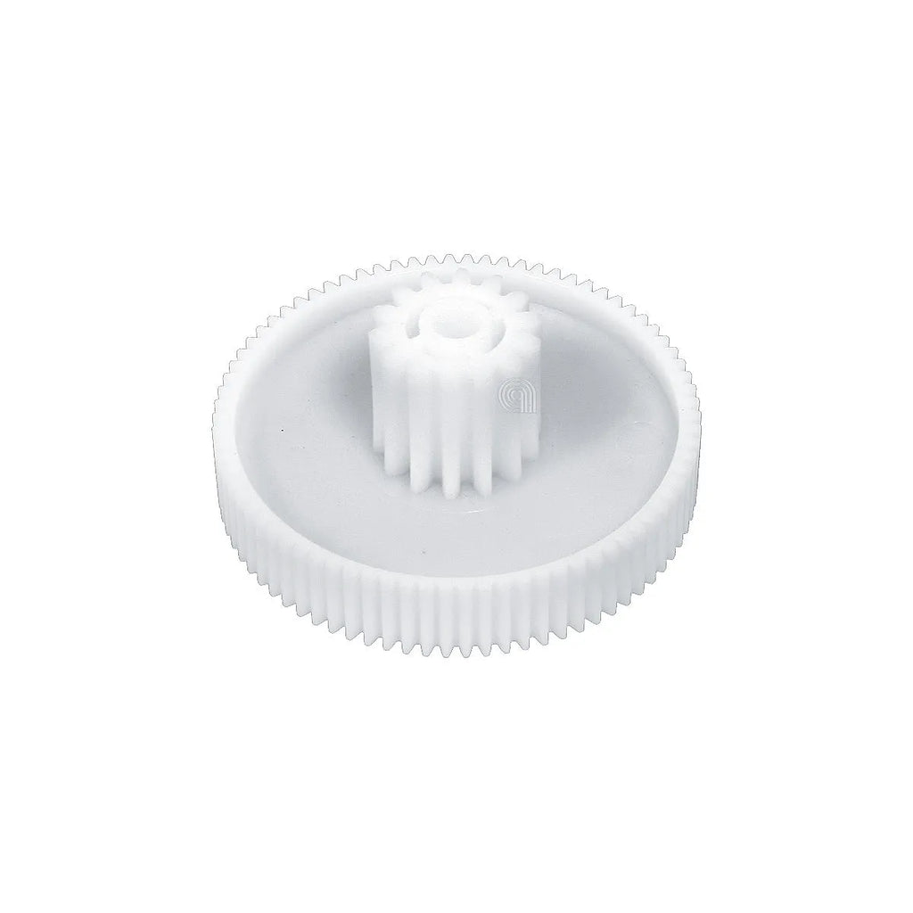 Conjunto de dos engranajes de repuesto para robots de cocina PANASONIC, color blanco. Este repuesto adaptable es útil para el mantenimiento básico y para prolongar la vida útil del equipo. Diseñado para conservar la sincronización de las piezas durante las fases de mezcla y procesamiento de alimentos, el pack ofrece una solución de mantenimiento sencilla y de bajo costo para prolongar la vida útil del equipo. Facilita la sustitución de engranajes desgastados o dañados, evitando interrupciones en la operación y reduciendo tiempos de reparación. Su diseño está orientado a la compatibilidad con la estructura de los componentes de la línea Panasonic, manteniendo la integridad mecánica y la tolerancia adecuada para un ajuste preciso.