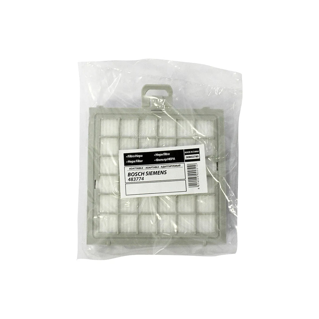 Este filtro adaptable rectangular de alta eficiencia es compatible con aspiradoras de las marcas BOSCH, SIEMENS, CONSTRUCTA. Diseñado para atrapar partículas de polvo y alérgenos, asegura un aire más limpio en su hogar. Es un recambio adaptable de calidad superior, ideal para mantener el rendimiento óptimo de su aspiradora. Sustituye a las referencias originales 00483774, 00483774.
