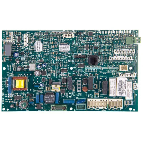 La placa electrónica Chaffoteaux 6510581801 es un módulo de control fundamental para el correcto funcionamiento de calderas de la serie ALIXIA24C y modelos relacionados. Gestiona el encendido, la regulación de la llama y la seguridad, asegurando un calentamiento eficiente y seguro del agua. Esta placa actúa como el cerebro de la caldera, interpretando señales de sensores y controlando componentes como el ventilador, electrodos de ignición y válvulas de gas.