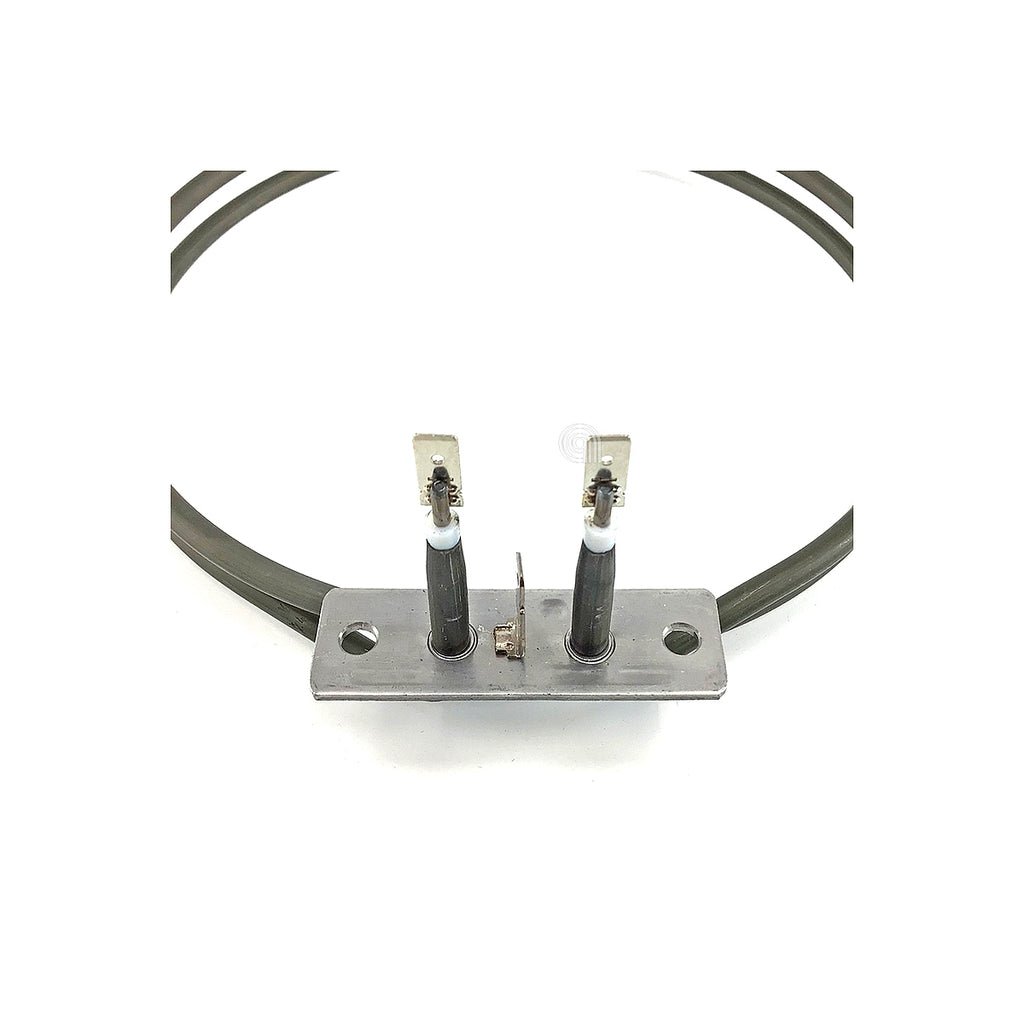 Recambio de resistencia circular adaptable para hornos de las marcas WHIRLPOOL, BAUKNECHT, e INDESIT. Esta resistencia de convección tiene una potencia de 2400W y es la fuente de calor trasera dentro del horno, ideal para una cocción uniforme. Es una pieza de repuesto fundamental para asegurar el correcto funcionamiento de su electrodoméstico.