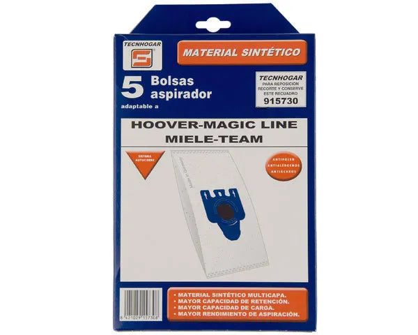 Saco aspirador sintético. 5 unidades. Mod. ARIANNE T 2001, AT01011, ATHOSAT70. C.O. 915730. MAGIC LINE, MIELE, TEAM.